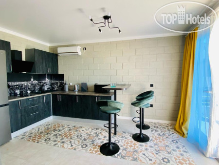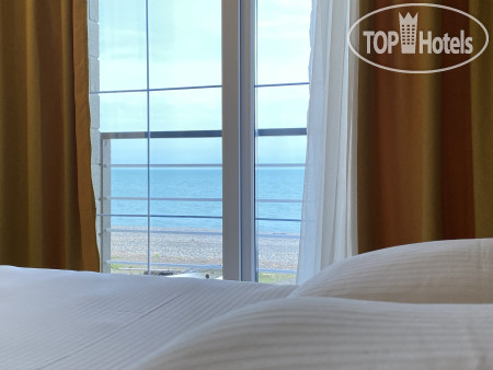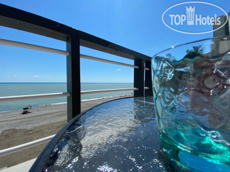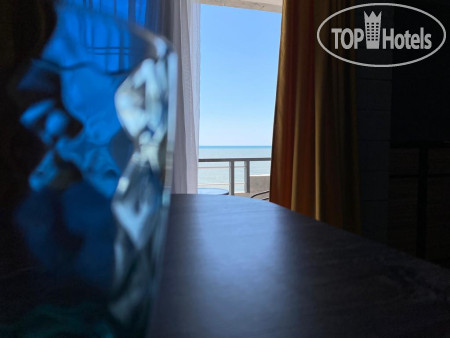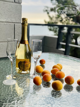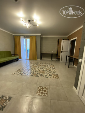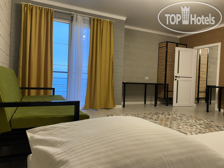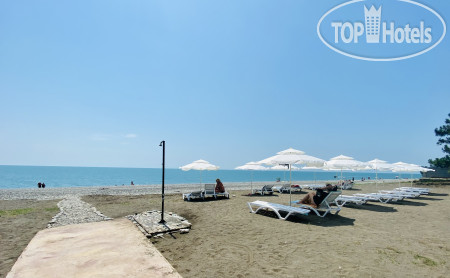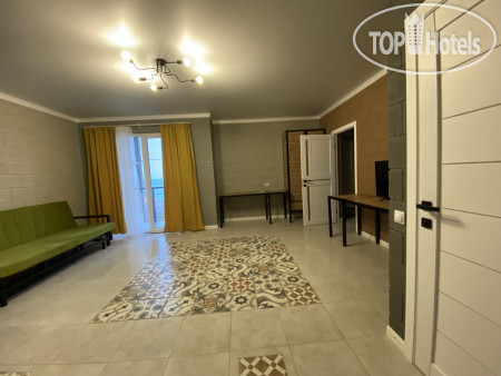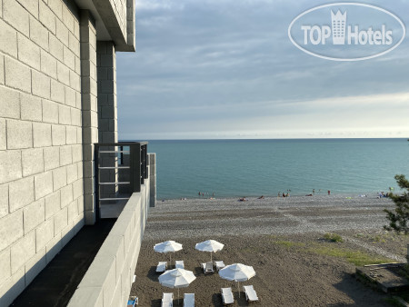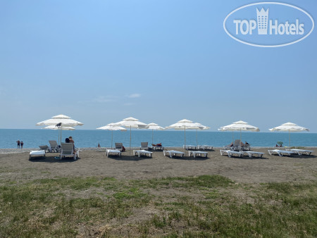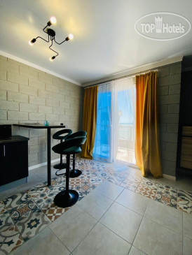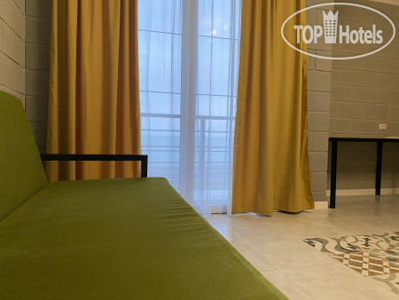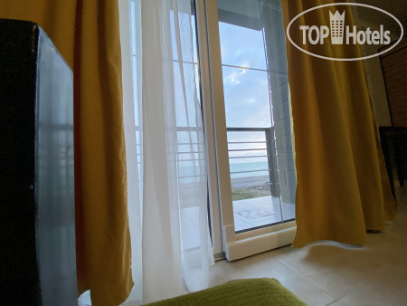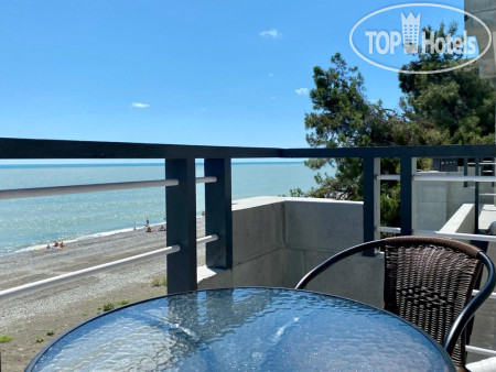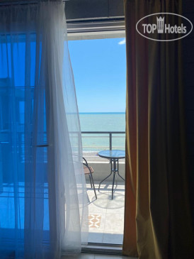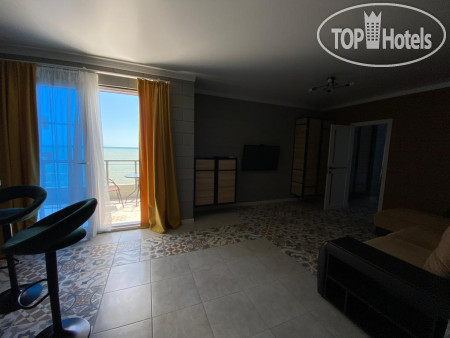 У гостиницы хорошее расположение , первая линия. От границы 10 мин на машине. Номера квартирного типа. Жили в трехкомнатной квартире, с видом на море. В квартире все есть: кухня, холодильник, плита, микроволновая печь, стиральная машина. Большой балкон с столиком, диваном и креслом. 2 ванные, 1 спальня с двухместной кроватью, 1 спальня с 2 отдельными кроватями, зал с раскладным диваном. Вай-фай ловит плохо.