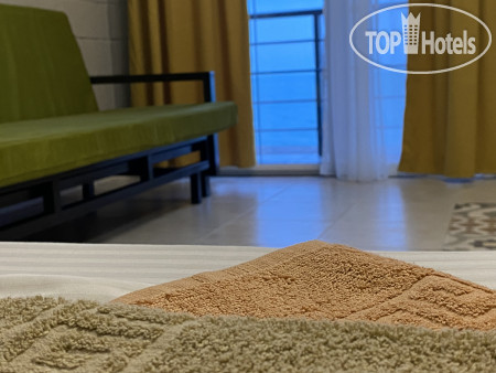 Разместили сразу по прибытию. Номер не соответствует фотографиям на сайте- номер маленький и нет даже шкафа.Вещи лежали в чемодане. Питание вкусное,но скудное и маленькие порции - 11 летний ребенок не наедался,хотя не отличается обжорством. Овощей и фруктов не дают никаких - и это в августе в Абхазии. Хозяйка сказала - если вам надо идите и покупайте. Завтрак - каша либо 2 бутерброда с плавленым сыром. Обед - маленькая тарелочка супа и майонезный салат. Вторых блюд не давали мотивируя это тем,что никто не будет. Ужин - маленькая порция,из мяса лишь курица. По посёлку - тишина и спокойствие - людей мало ,развлечений нет. Кому нравится уединение Вам сюда. Так же хочется отметить море - чистейшее и дельфины приплывают. Ну и кто был в Абхазии знают - здесь везде валяется мусор - это начинается с границы- местным на это всё равно)))))