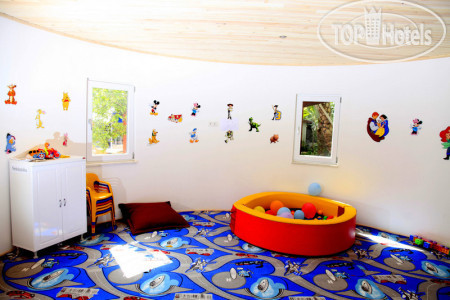 На территории бассейн для взрослых и детский. Детская комната. 3 уютных места со столиками и диванчиками.Возле бара 1 и 2 у ресепшена.